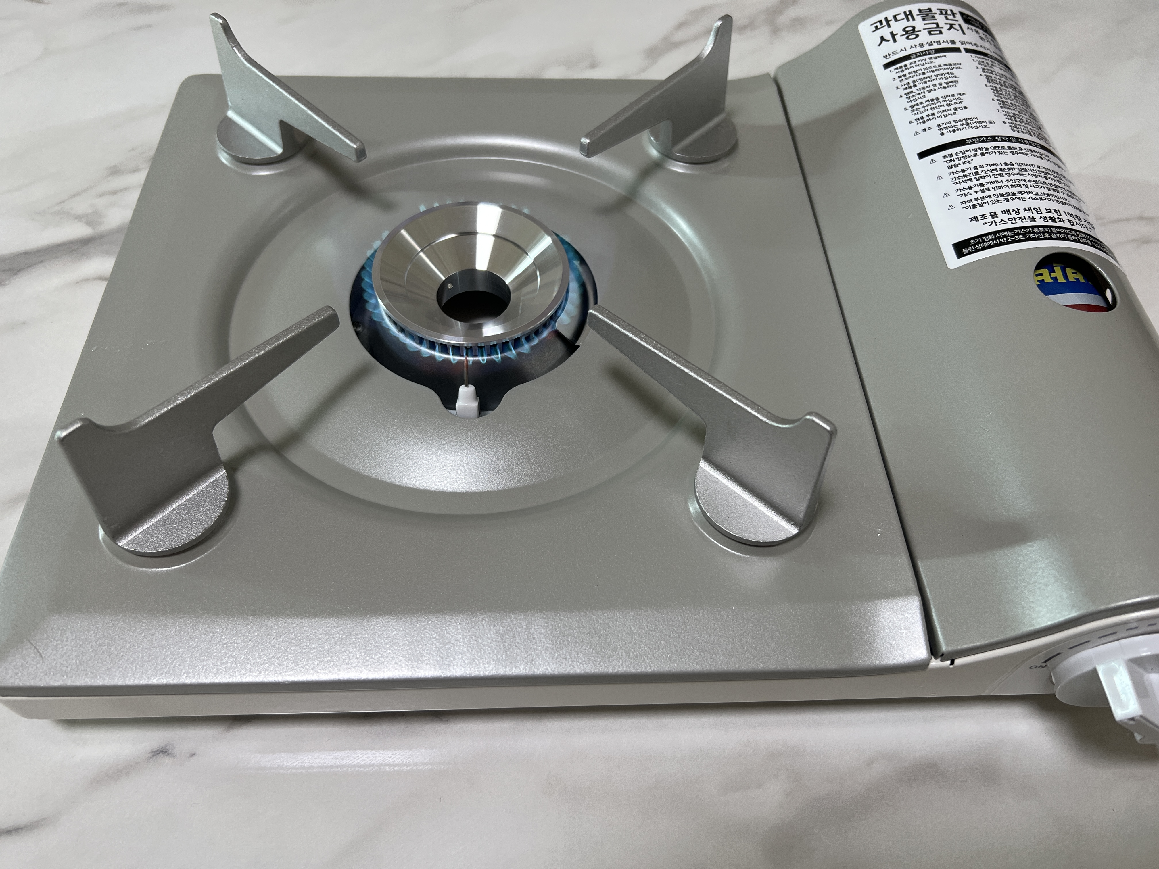 이제 가스버너를 on 해봅시다 👌 굳굳 화력이 아주 좋다. 예전 가스버너들과 달리 화력이 모아진다는 느낌이 강하다.