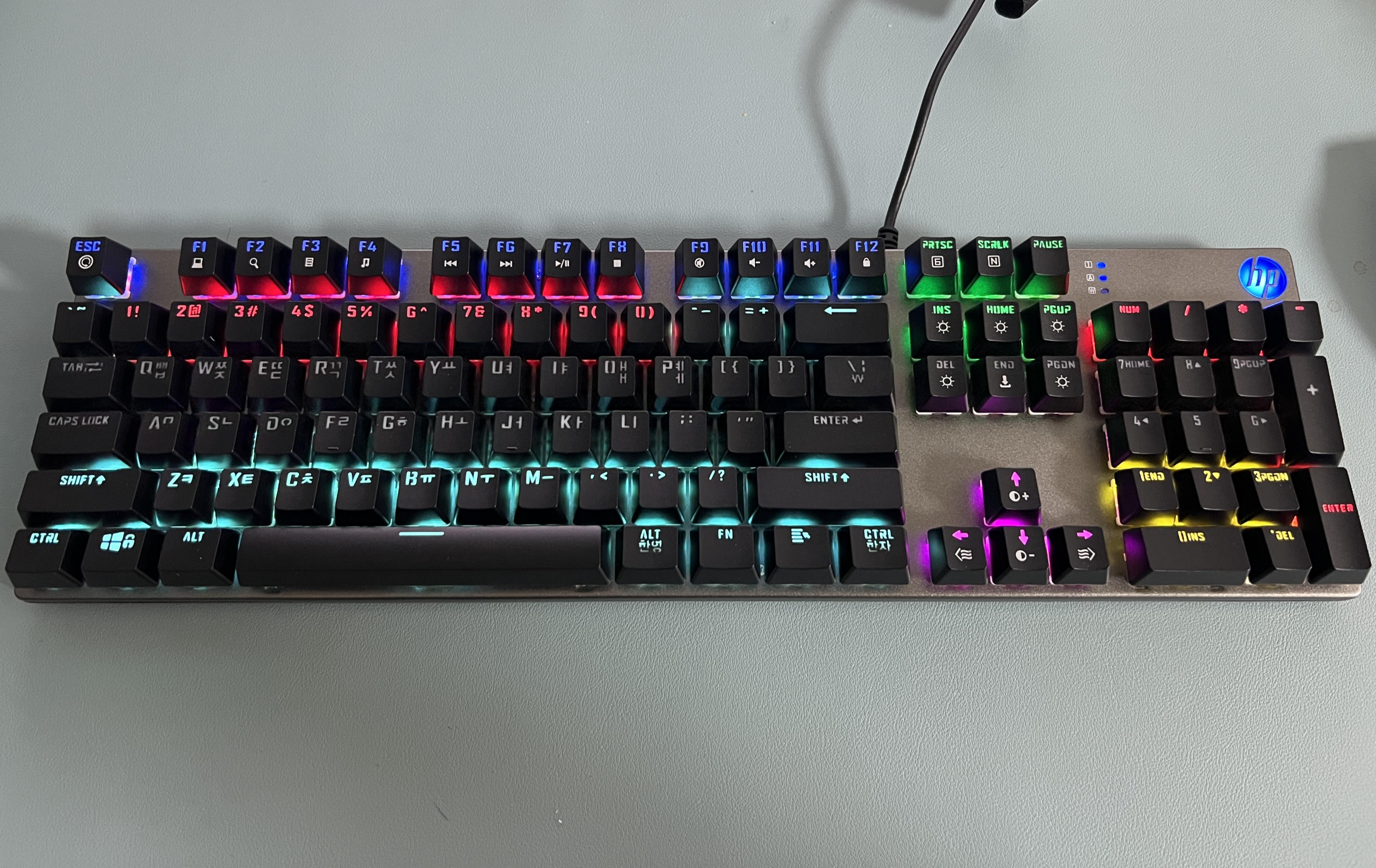 키캡을 분리할 수 있는 도구도 동봉되어 있었다. hp라는 대기업 . 그리고 디자인 . 가격. 성능 모두 완벽히 만족시키는 제품이다. 터치감도 부드럽고 살짝 예민한 편이라 힘을 들이지 않고 타이핑이 가능하다.