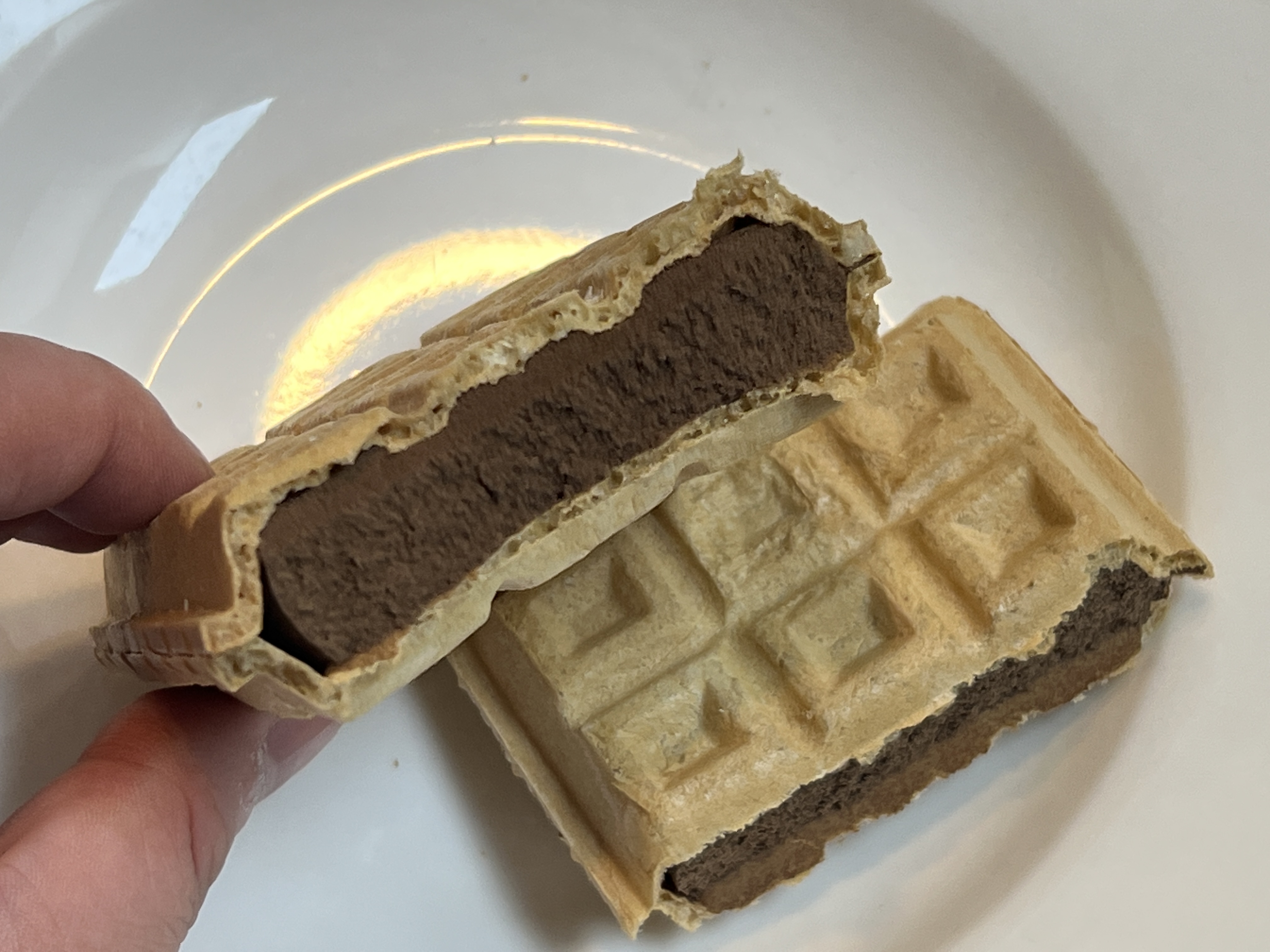 모양은 모나카 제품과 흡사하다. 크기도 꽤 크고 두께도 두껍다. 가격에 비해 양도 나쁘지 않았다. 그리고 모나카의 눅눅함도 없었고 씹는 식감도 좋았다.