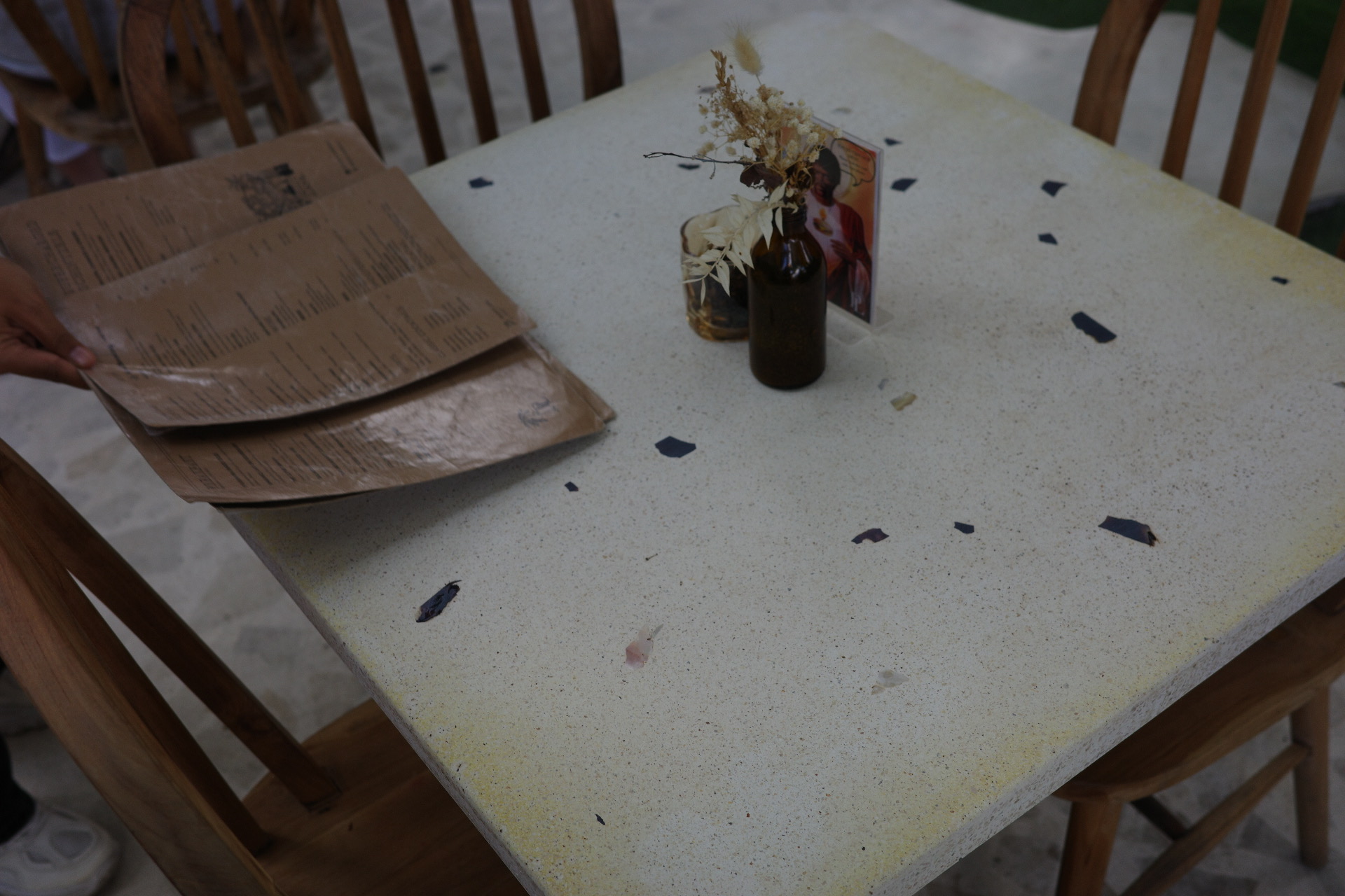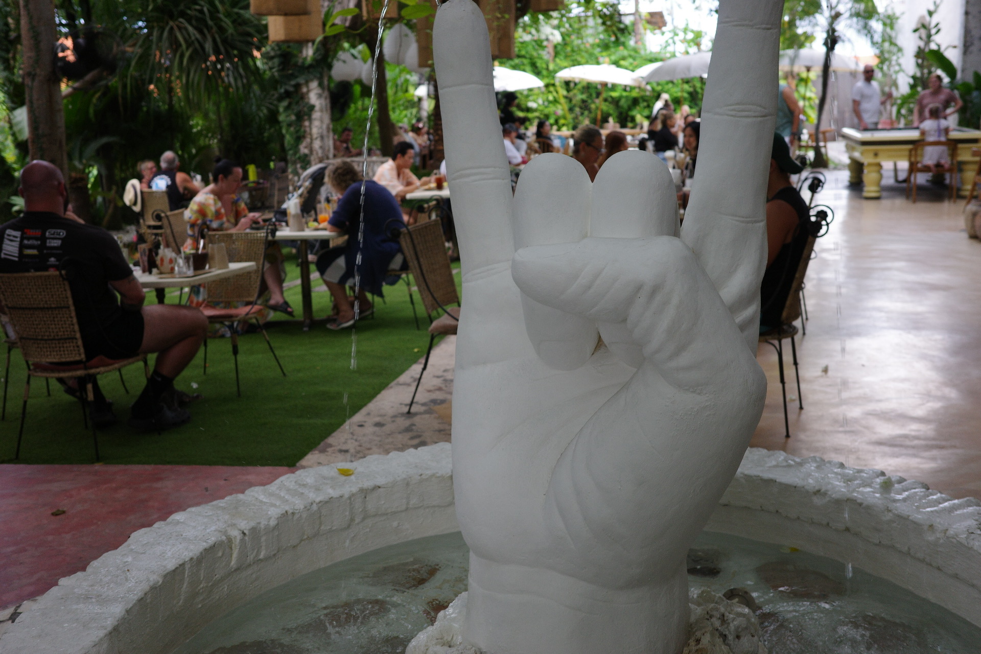 특히 페니레인의 시그니처 포토 스팟인 거대한 손 모양 분수대가 중앙에 자리하고 있다. 분수대를 중심으로 둥글게 테이블들이 배치되어 있는데, 이 자리가 가장 인기 있는 좌석이다.