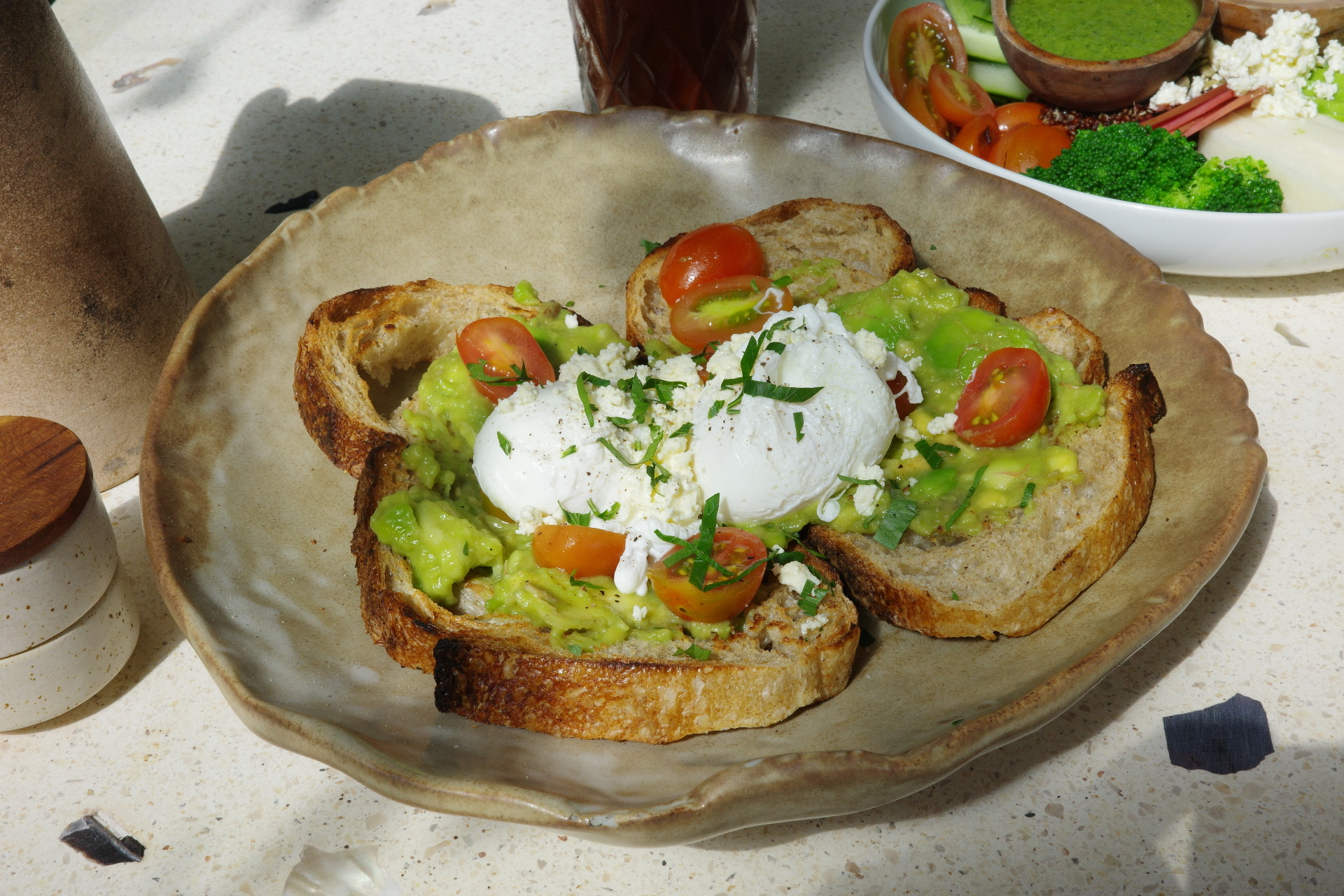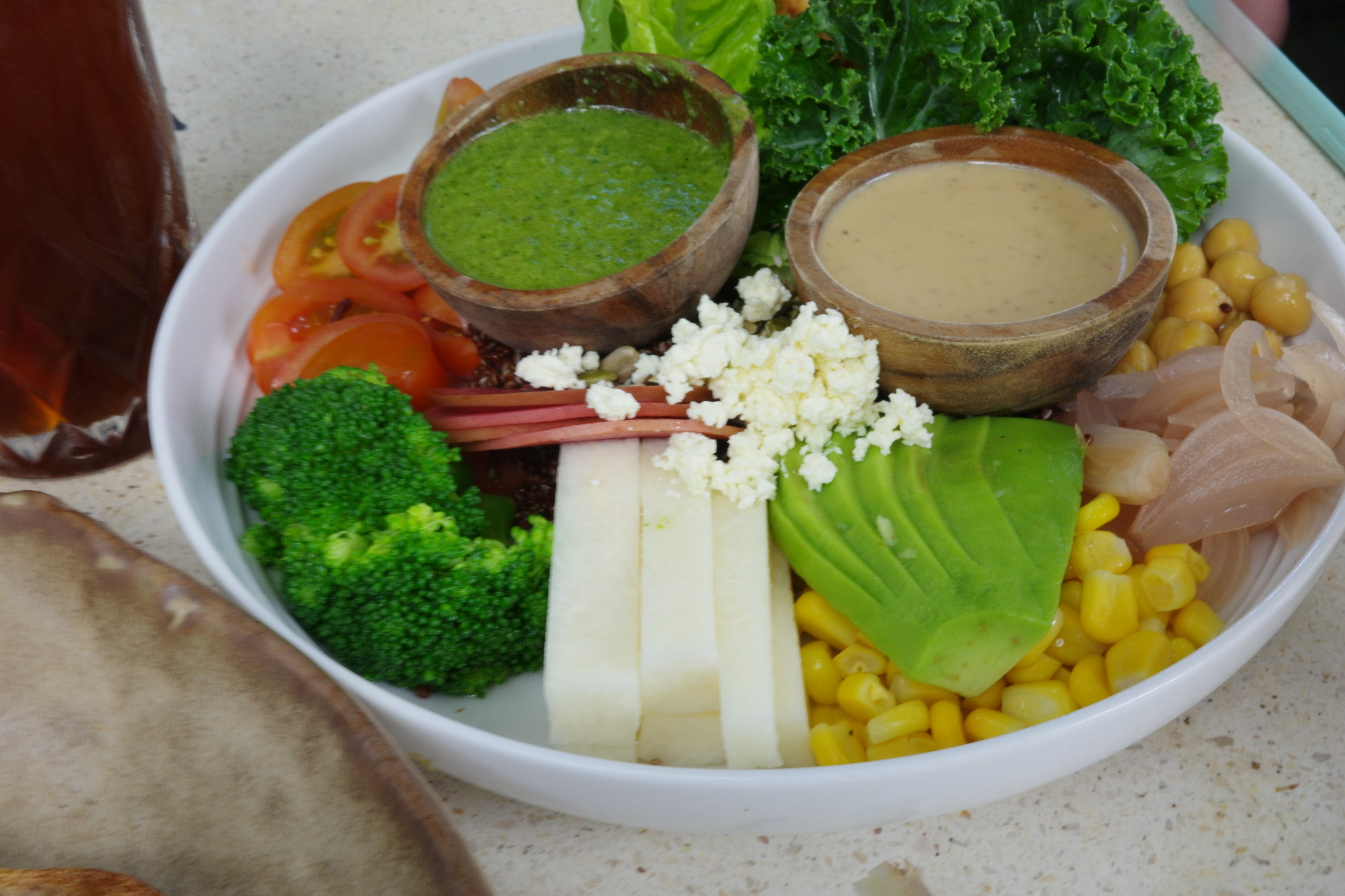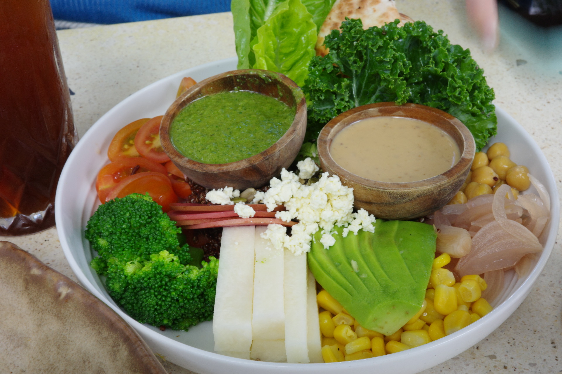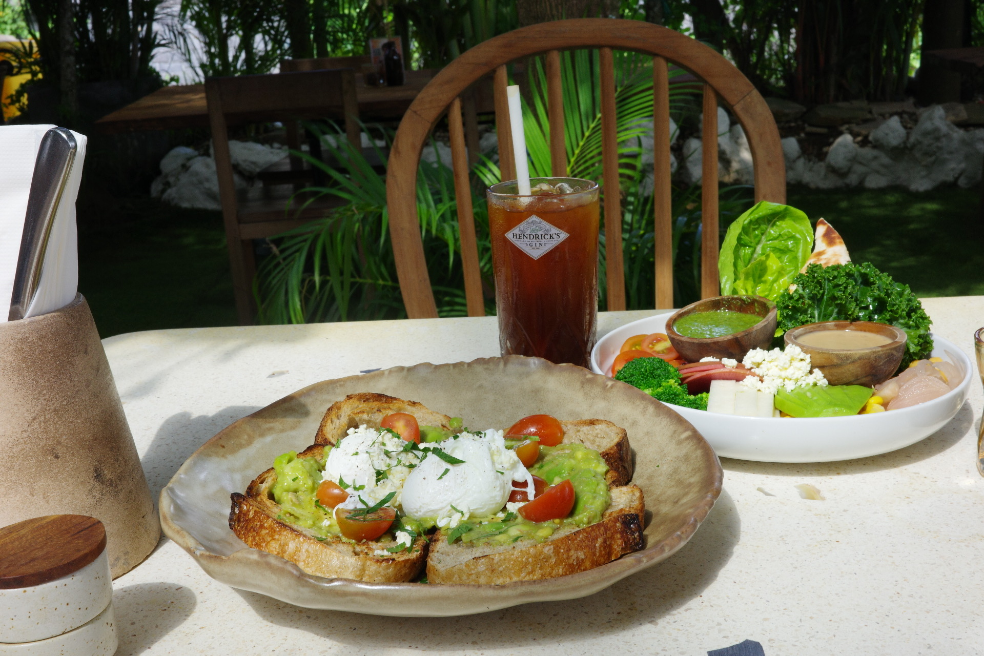 아이스 아메리카노와 아보카도 샤워도우 샌드위치, 슈퍼푸드 샐러드로 주문했다. 메뉴들이 전체적으로 건강하다. 비건 음료도 잘 갖추어져 있고 발리와 잘 어울리는 헬씨한 음식들이 많았다.