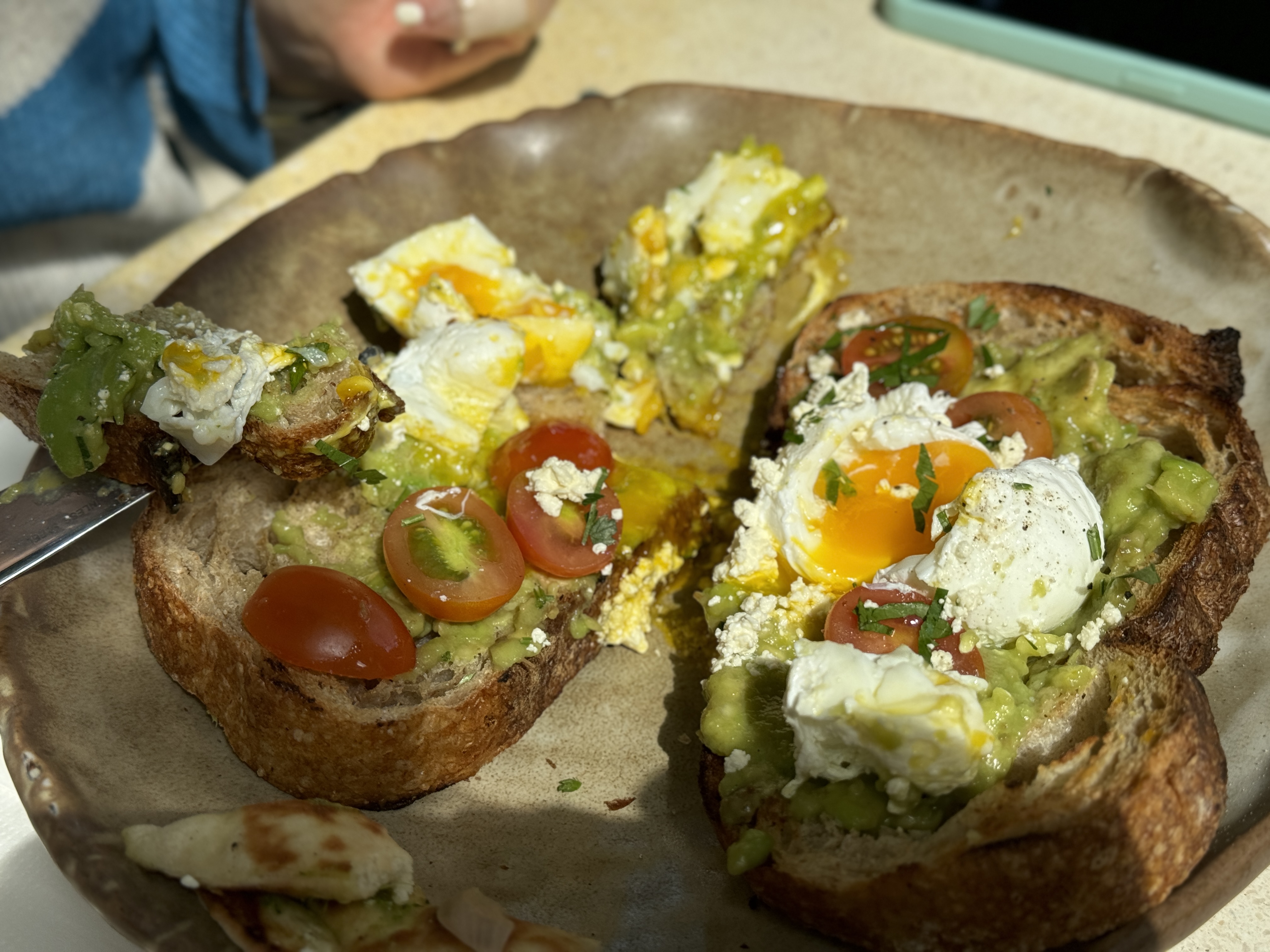 샤워도우 자체도 맛있었고 치즈와 계란, 아보카도가 잘 어울렸다.